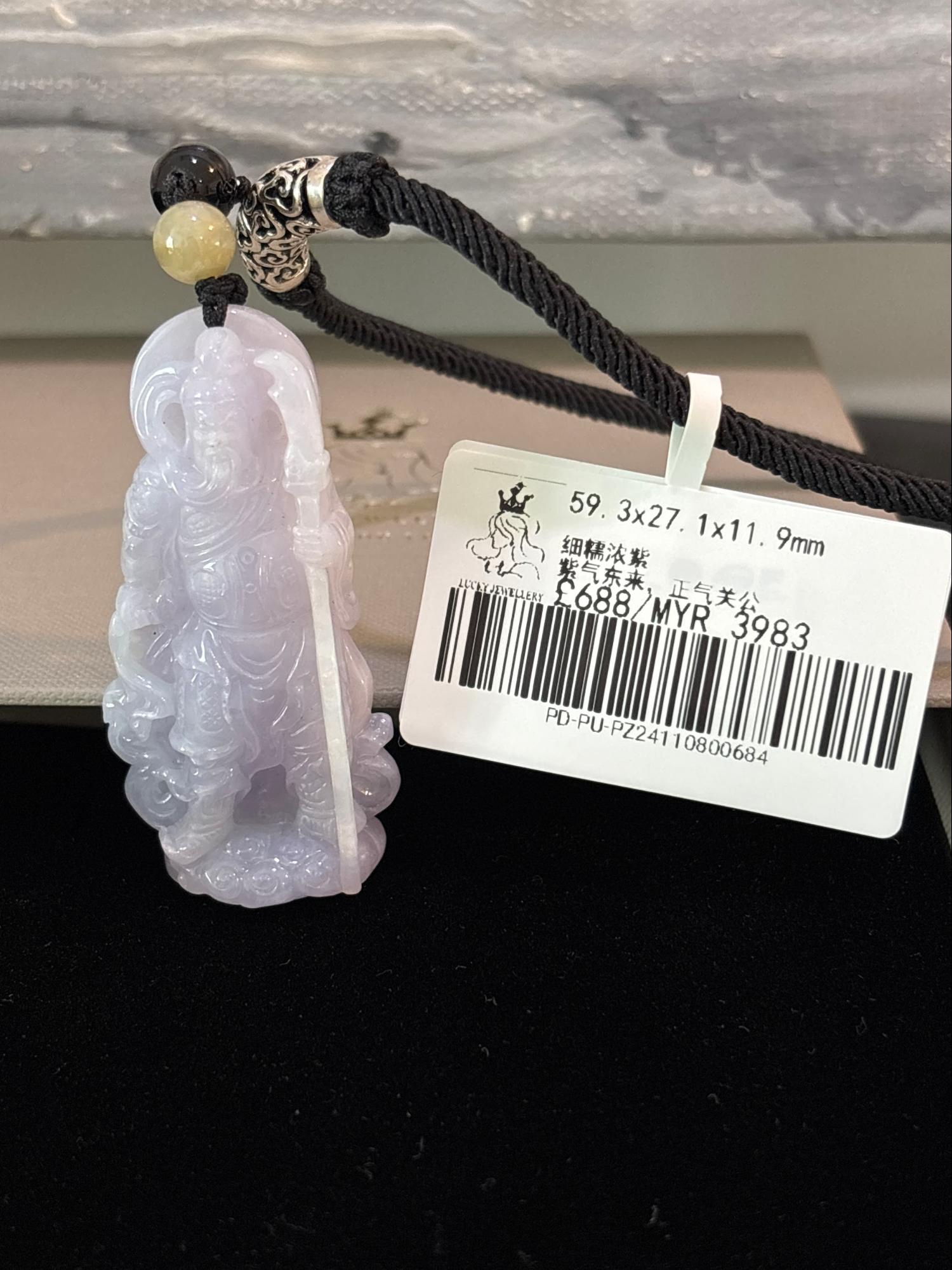 All Natural Burmese Jade Guan Yu Pendant